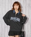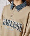デニム襟がアクセントになった、カジュアル×ストリートムード漂うハーフZIPトレーナー。