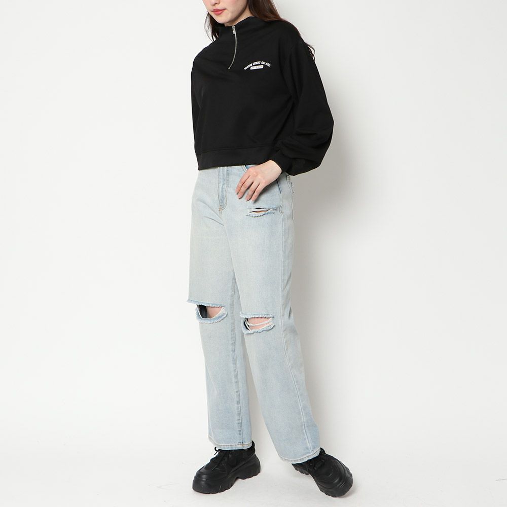 フレンチスリーブハーフZIPプルオーバー