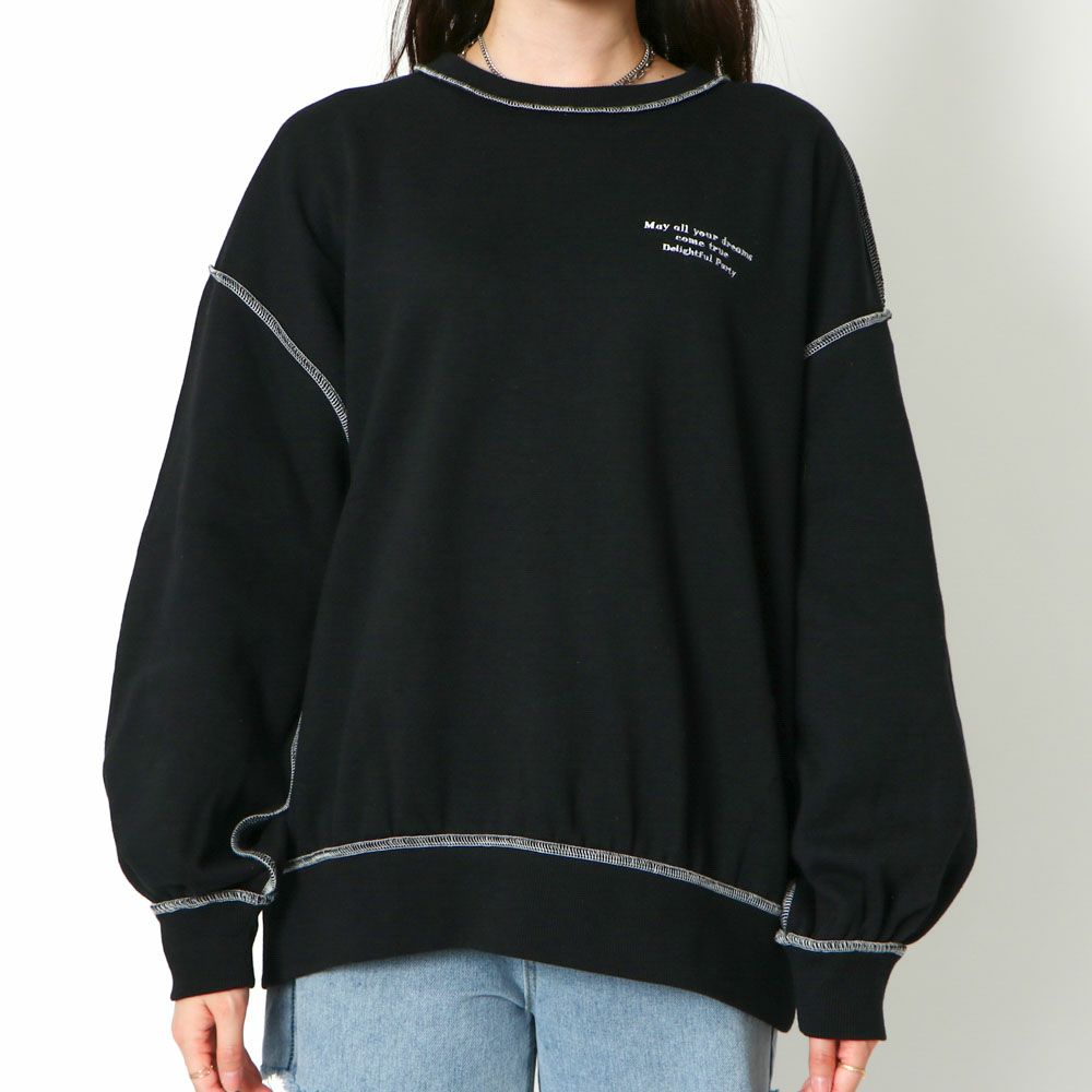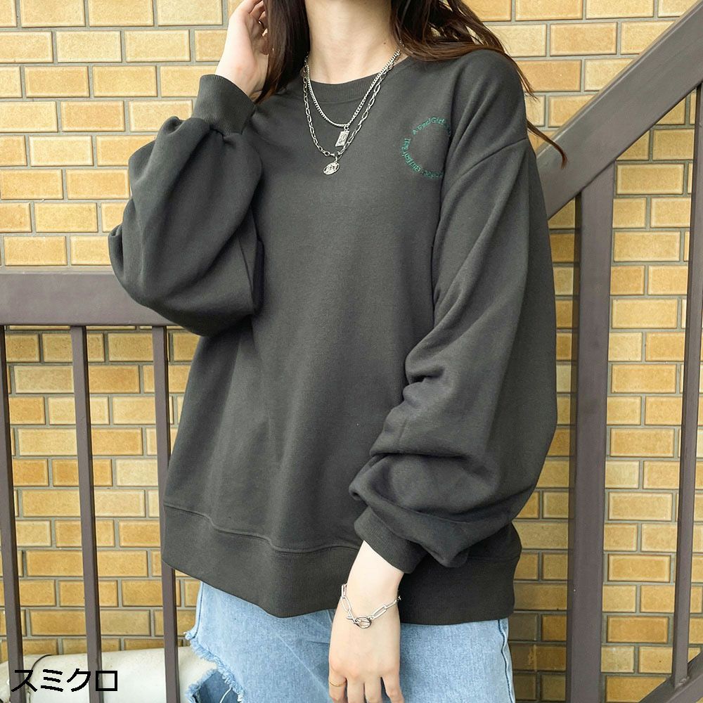 ステッチ刺しゅう裏起毛プルオーバー