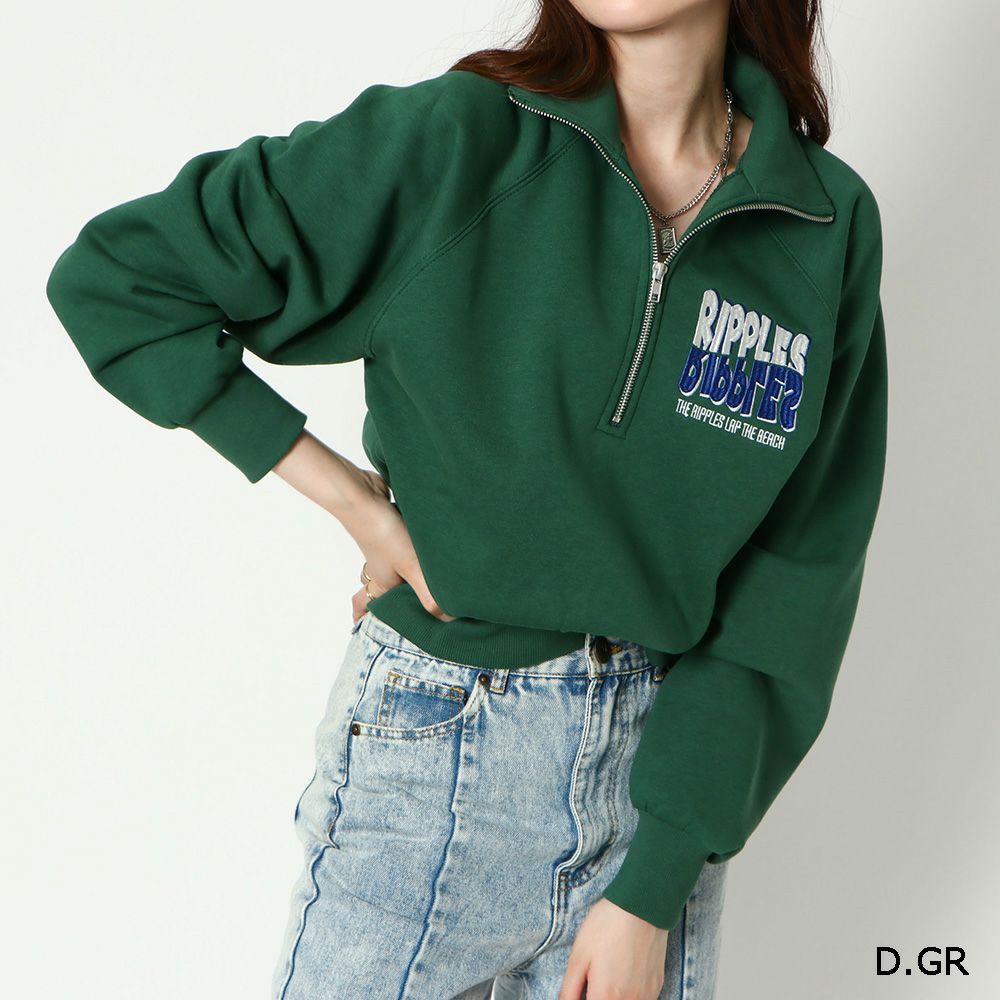 短丈ZIPUPミニ裏毛プルオーバー