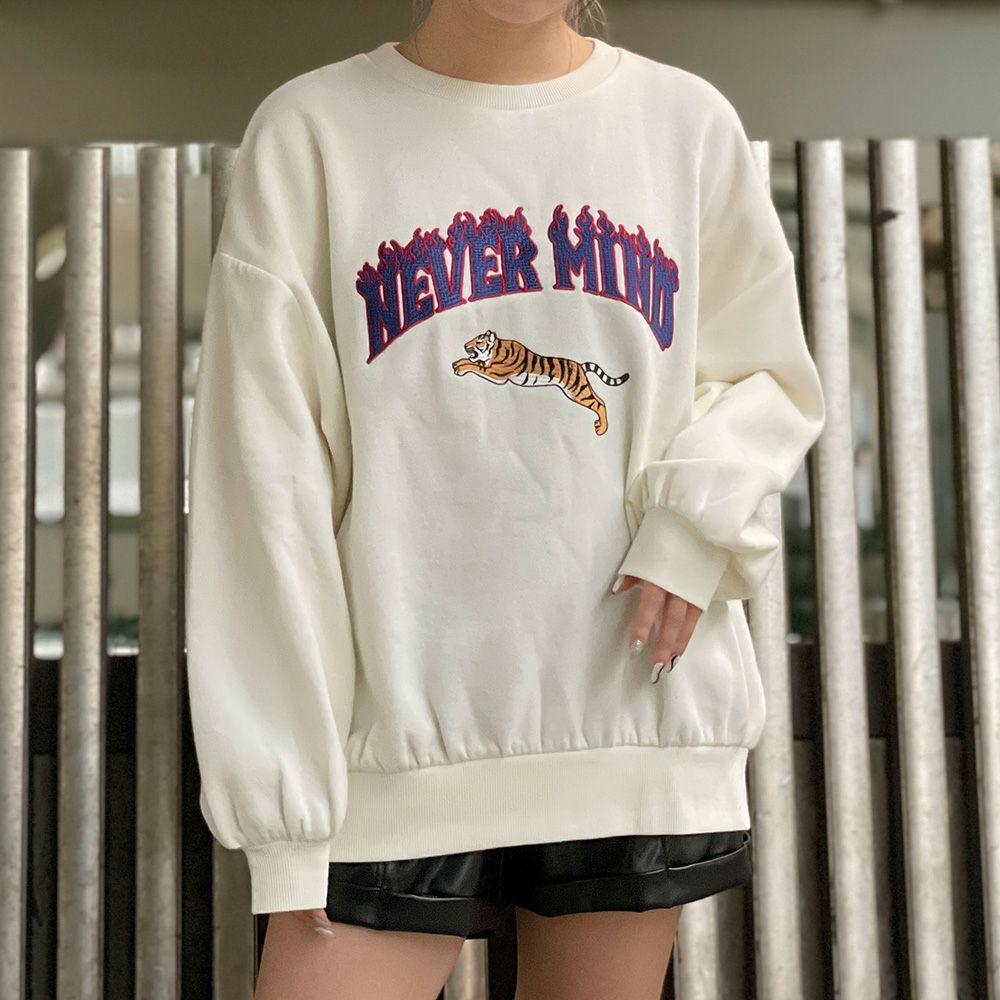 トラ刺しゅう裏起毛プルオーバー