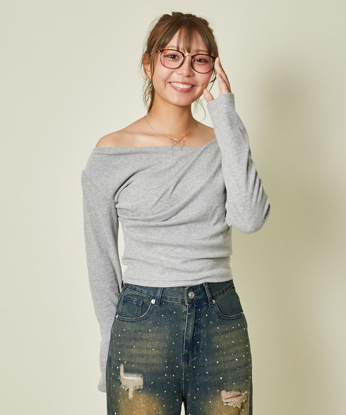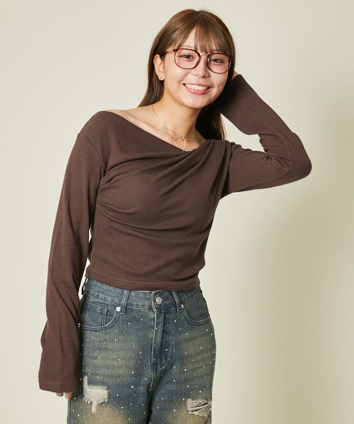 他の画像を見る 《美鎖骨×抜け感ドレープ》アシメトップス/くびれ見せの1枚 2BUY10%OFF 定価 ¥ 4,389 のところ SALE価格 ¥ 2,194 税込 カートに入れる お気に入りに登録する