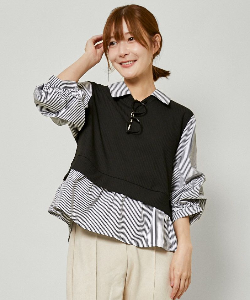 他の画像を見る 《ドッキング風デザイン》レディース テレコカットソー 布帛切替 ボリューム袖 フェイクレイヤード トップス 春秋冬 NEW 2BUY10%OFF 定価 ¥ 5,489 のところ SALE価格 ¥ 2,744 税込 カートに入れる お気に入りに登録する