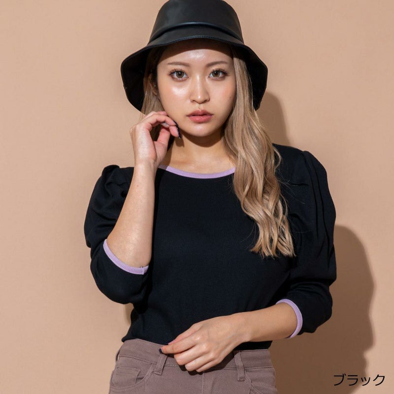 バイカラーのパイピングがアクセントに♪女性らしいコンパクトなシルエットで程よくフィット感のあるリブ素材がすっきりと魅せてくれます◎スキニーデニム合わせはもちろん、ミニスカートにインしてガーリーなスタイルもおすすめ☆