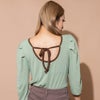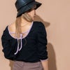 パイピング パワショル リボン カットソー トップス リブ バックデザイン 背中開き 配色 2030807