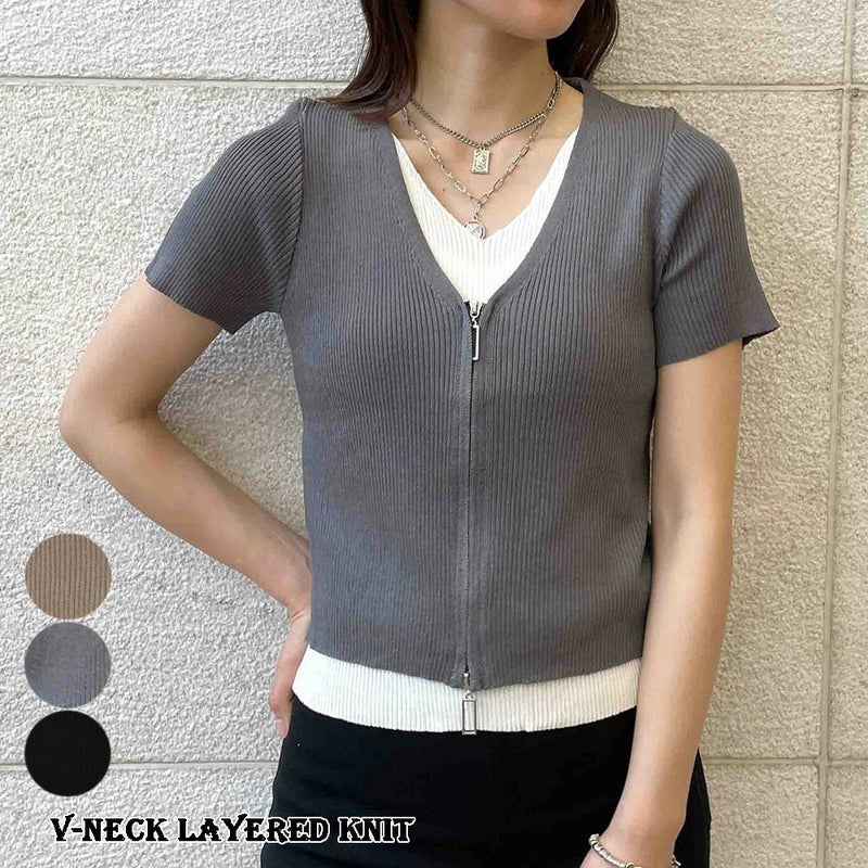 プルオーバー トップス ニット レイヤード Vネック 春 夏 2322693