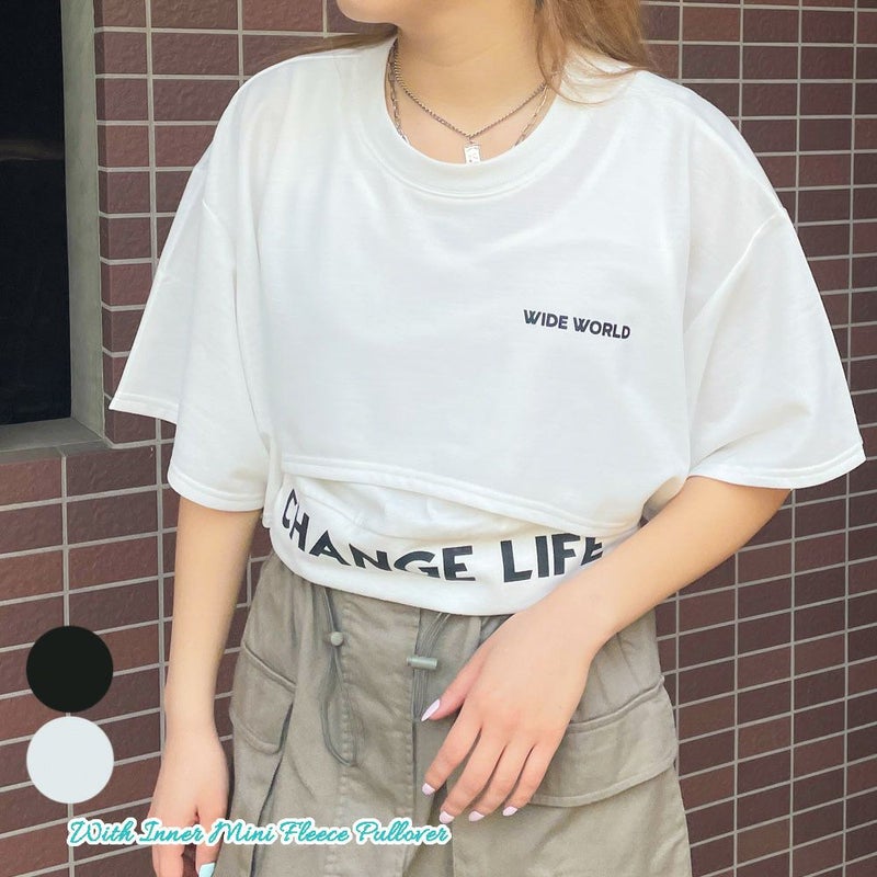 ショート丈トップスとタンクトップがレイヤードになったスタイリング映えするプルオーバーが登場★ワンポイントのシンプルなプルオーバーと、裾にあしらったレタードデザインがスタイリッシュな印象をプラスするタンクトップがセットに♪伸縮性のあるやわらかな生地で着心地も快適◎それぞれ単品でも活躍するアイテムで着回し力抜群です☆