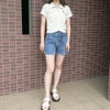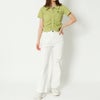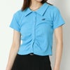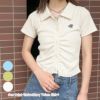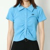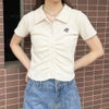 フロントのギャザーがレディライクな印象のトップスが登場★伸縮性がありボディラインに程よくフィットするテレコリブ素材♪胸元の刺繍もコーディネートのポイントに◎短丈のコンパクトなトップスはミニスカートと合わせてY2Kムードにしたり、ワイドデニムや太めのカーゴパンツ合わせが今年らしく決まります☆