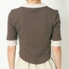 スキッパーデザインでデコルテをすっきりきれいに見せてくれるプルオーバーが登場★6分袖で気になる二の腕を隠せちゃう♪裾はラウンドカットされているのでハイウエストボトムやタイトスカートなどと相性抜群◎襟、袖口の配色がポイントになったシンプルでデイリー使いしやすくトレンド感もおさえた万能トップスです☆