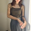 キラキラしたラメをたっぷり織り込んだ素材が煌びやかな雰囲気の長袖トップスとキャミソールのセット。旬のシアーデザインで大人顔にアップデート。すっきり開いたネックラインや袖口にあしらったメロウデザインがアクセントに。