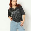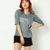 上品に輝くラメがコーディネートを華やかに見せてくれるトレンドの半袖シアートップス。フロントにはロゴをプリントし、カジュアルにも着て頂けるデザインに◎ベーシックなカラー展開なので幅広いコーデに馴染みやすい♪