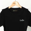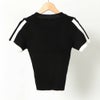 スタイリッシュなロゴ刺繍とラインが、コーデを引き締めてくれる半袖ニットトップス。さらっとした伸縮性のあるニットを採用しているので着心地も快適◎裾リブをワイドにすることで、インもすっきりまとまり、アウトで着てもスタイルアップを叶えます♪
