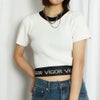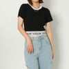 艶感のあるラメ入りニットトップスで、いつもの着こなしをアップデート。トレンドのコンパクトなシルエットで旬顔に☆ウエストにジャガードされたロゴがポイントになり、コーデを引き立てます◎