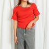 アシメなデザインが、モードな印象を与えるニットトップス。サイドにギャザーを寄せたシルエットも可愛いポイント。合わせるボトムスを問わない、着回し力の高さも嬉しいアイテムです。