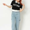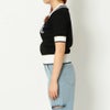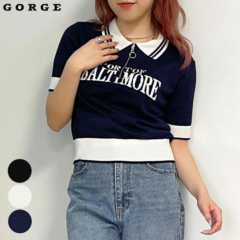 配色デザインのポロニットトップス。配色デザインとハーフZIPでトレンド感のあるスタイリングに。ゆるっと着れる洗練された印象のショート丈デザインは、ワイドパンツから、ハイウエストのボトムスとも相性◎