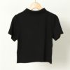 タイ付き&ショート丈のトレンドトップス。程良いストレッチと柔らかい素材のリブトップスは、着心地抜群◎身頃はワッペン付きのスキッパータイプだから、タイ無しで着てもgood☆ミニボトムを合わせれば一気に韓国コーデに♪
