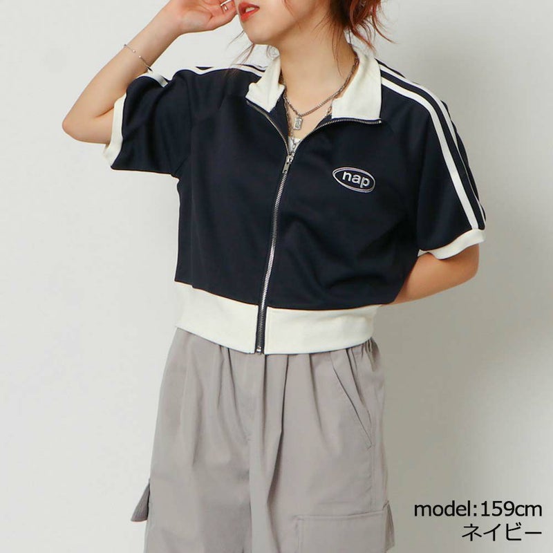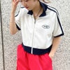 トレンドライクなラインデザインとフロントのロゴ刺しゅうがポイントのミニマルなトップス。コンパクトなサイズ感で、程良くボディにフィットして女性らしいシルエットをメイク。フロントZIPは開閉出来るので、羽織りとしても活躍してくれます◎