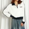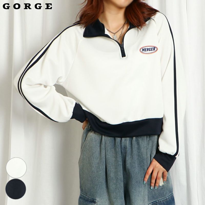 ショート丈がトレンドライク☆ハーフジップジャージ。胸元の刺しゅうもアイキャッチに♪カーゴパンツやワイドデニムパンツと合わせた韓国ストリートコーデがおすす☆軽量で伸縮性のあるジャージ素材なので、ストレスフリーに着用できます。
