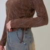ムラ柄がさりげなく個性を引き立て、ドロスト仕様でシルエットを調節可能。フィット感のあるテレコ素材は身体に程よくフィットし、女性らしいラインを引き立てます。シンプルでありながらも、ディテールにこだわりが詰まったデザインです。