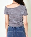 ヴィンテージライクなムラ染め加工とダメージ風デザインが、シンプルながらも存在感を放ち、こなれ感たっぷりの仕上がりに。