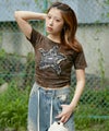 ムラ染め風のボディに大胆に施されたデニム地の星型ワッペンが印象的で、1枚で主役級の存在感を放つアイテム!