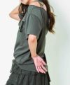 フロントの立体的なツイルロゴがアクセントになっており、シンプルな中にもストリートライクなエッセンスをプラス。ネックラインに付いた結びリボンも、さりげないポイントで可愛らしさを添えてくれます。片側に寄せたデザインがスタイリングに動きを加え、1枚でサマになる主役級トップスです。