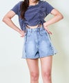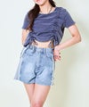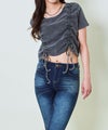 ピグメント加工ならではの、ヴィンテージライクな風合いがこなれ感たっぷり。両サイドに入ったドロスト仕様で、ギャザーを調節することでシルエットを自由に変えられるのがポイント◎ お腹まわりがくしゅっとなって程よく肌見せできる、夏らしいヘルシーなデザインに仕上がっています。立体感のあるフォルムが、コーディネートにリズムをプラス♪