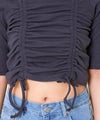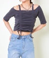 ネックラインはオフショルデザインで、デコルテをすっきりと見せてくれる華やかな印象に。フロントにはドロストデザインが施されていて、ギャザー感を調整することでシルエットに変化をつけられるのがポイント!その日の気分で丈感やバランスをアレンジできちゃいます◎