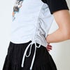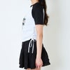 短めに絞ればクロップド丈のように着ることができ、ワイドパンツやハイウエストボトムとのバランスをとりやすいです。緩めにすればリラックス感のあるルーズシルエットにもなるため、気分やコーディネートに合わせてアレンジ可能です。