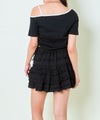アシンメトリーなワンショルが今っぽく、インパクトのあるフロントプリントが目を引きます。サイドのドロストでシルエット調整もできるから、気分に合わせて丈感チェンジも◎ぴたっとフィットするリブ素材でスタイルアップ効果も狙えます!