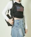ストリート感とガーリー感をミックスした、ラインストーンテレコドロストトップス。