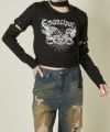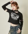 柔らかく伸縮性のあるリブ素材が、ほどよく体にフィットしながらストレスフリーな着心地に。大胆なプリントが印象的なフロントデザインに加え、袖部分のレースアップや取り外し可能なストール付きなど、他にはない個性が光るディテールが満載です。抜け感と存在感のバランスが絶妙で、1枚で着映えします。