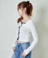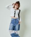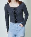 フロントレースアップとレースインナー風ディテールが目を引く、女性らしさ満点のリブトップス。