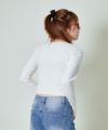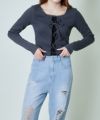 繊細なレースがチラッとのぞく胸元に、リブ素材の柔らかさが絶妙にマッチ。レースアップデザインが立体感を出し、コーデの主役として存在感しっかり。ボディにほどよくフィットするシルエットで、上品さも抜け感も欲張れる一枚です。