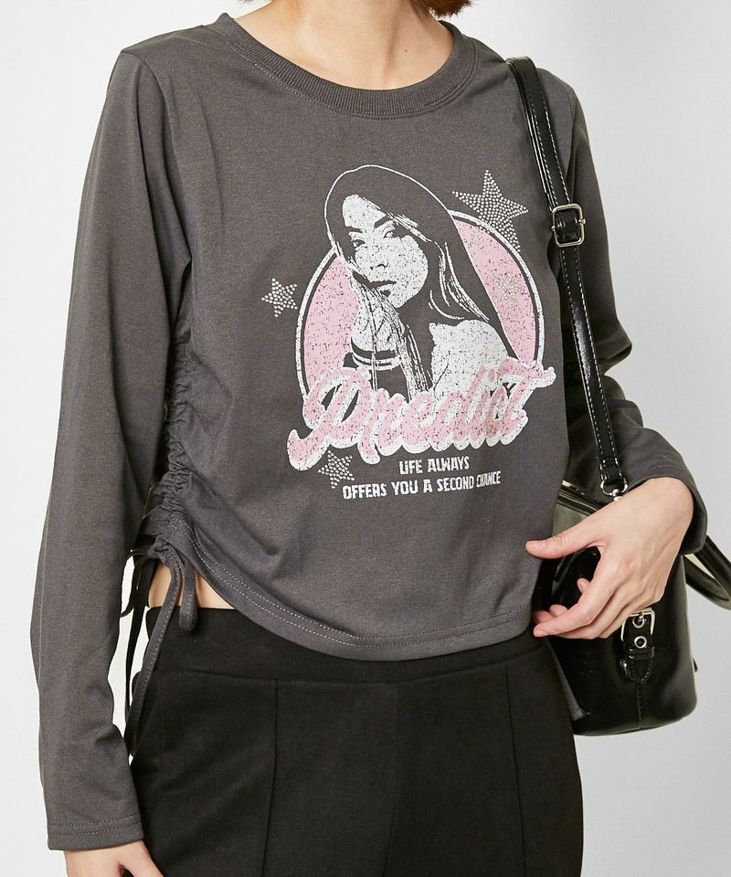 フロントに描かれたガールズフォトと大きなロゴが、視線を惹きつける《長袖カットソー》?
