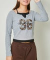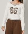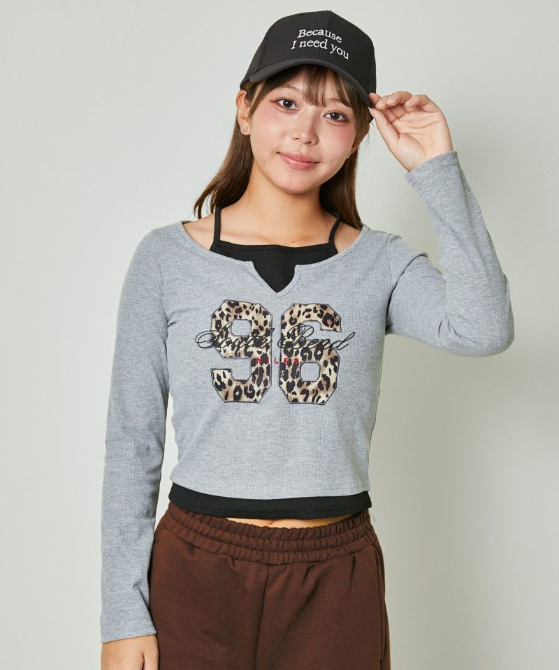胸元にドンと入った「96」のヒョウ柄ロゴが目を引く、Y2Kムード漂うデザイン。