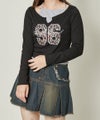 襟ぐり&裾からチラ見えするインナー風パーツは、実は“貼り付け”デザインで、レイヤードしてる風に見せつつ、1枚で完成する優秀トップス◎
