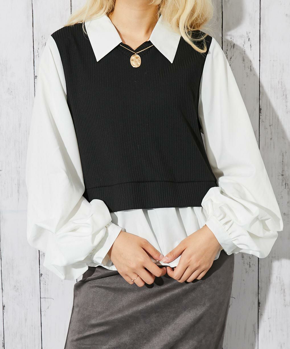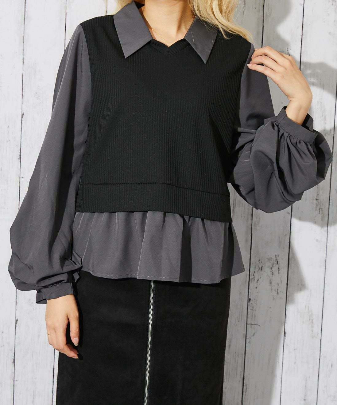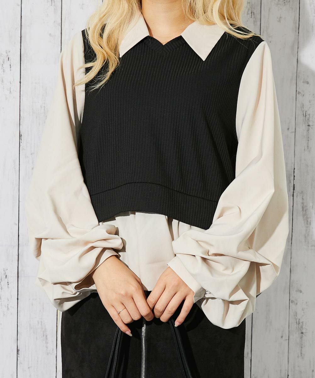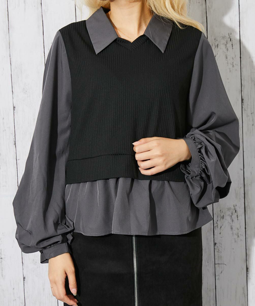 他の画像を見る 《ドッキング風デザイン》レディース テレコカットソー 布帛切替 ボリューム袖 フェイクレイヤード トップス 春秋冬 2BUY10%OFF 通常価格 ¥ 5,489 のところ 販売価格 ¥ 2,744 税込 在庫切れ カートに入れる お気に入りに登録する