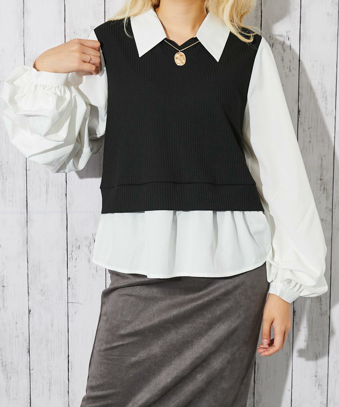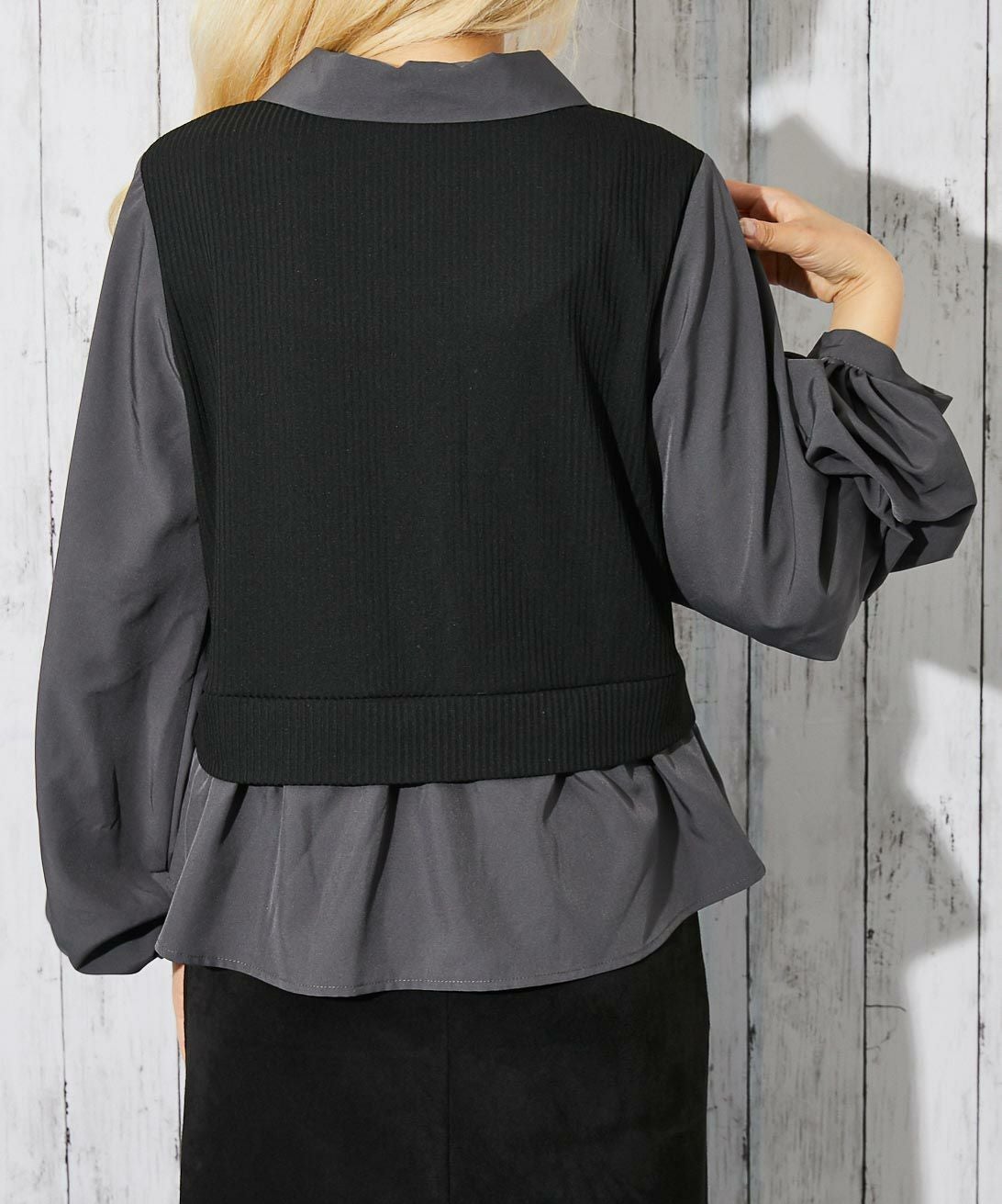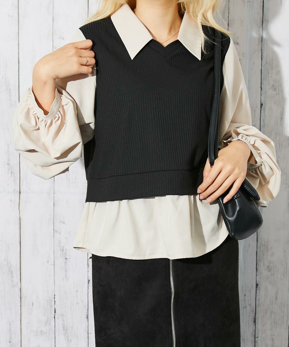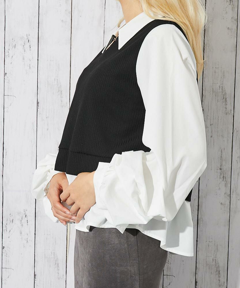 他の画像を見る 《ドッキング風デザイン》レディース テレコカットソー 布帛切替 ボリューム袖 フェイクレイヤード トップス 春秋冬 2BUY10%OFF 通常価格 ¥ 5,489 のところ 販売価格 ¥ 2,744 税込 在庫切れ カートに入れる お気に入りに登録する