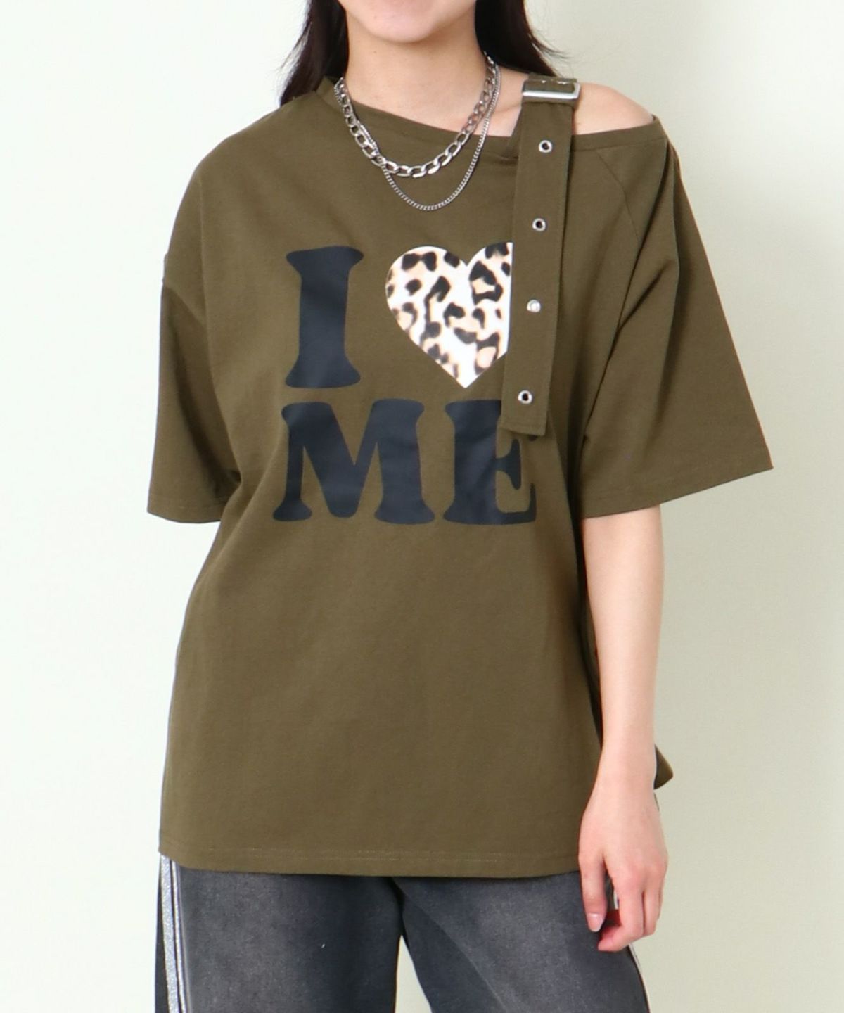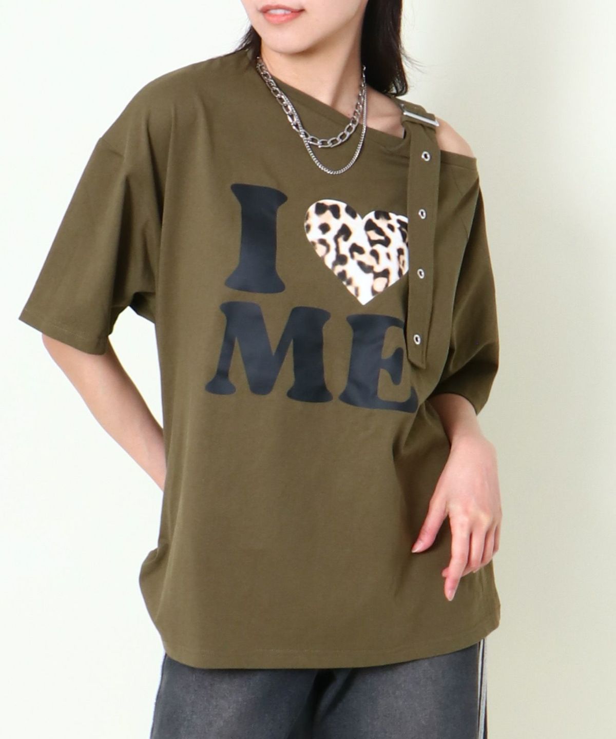 肩ベルトワンショルTシャツ