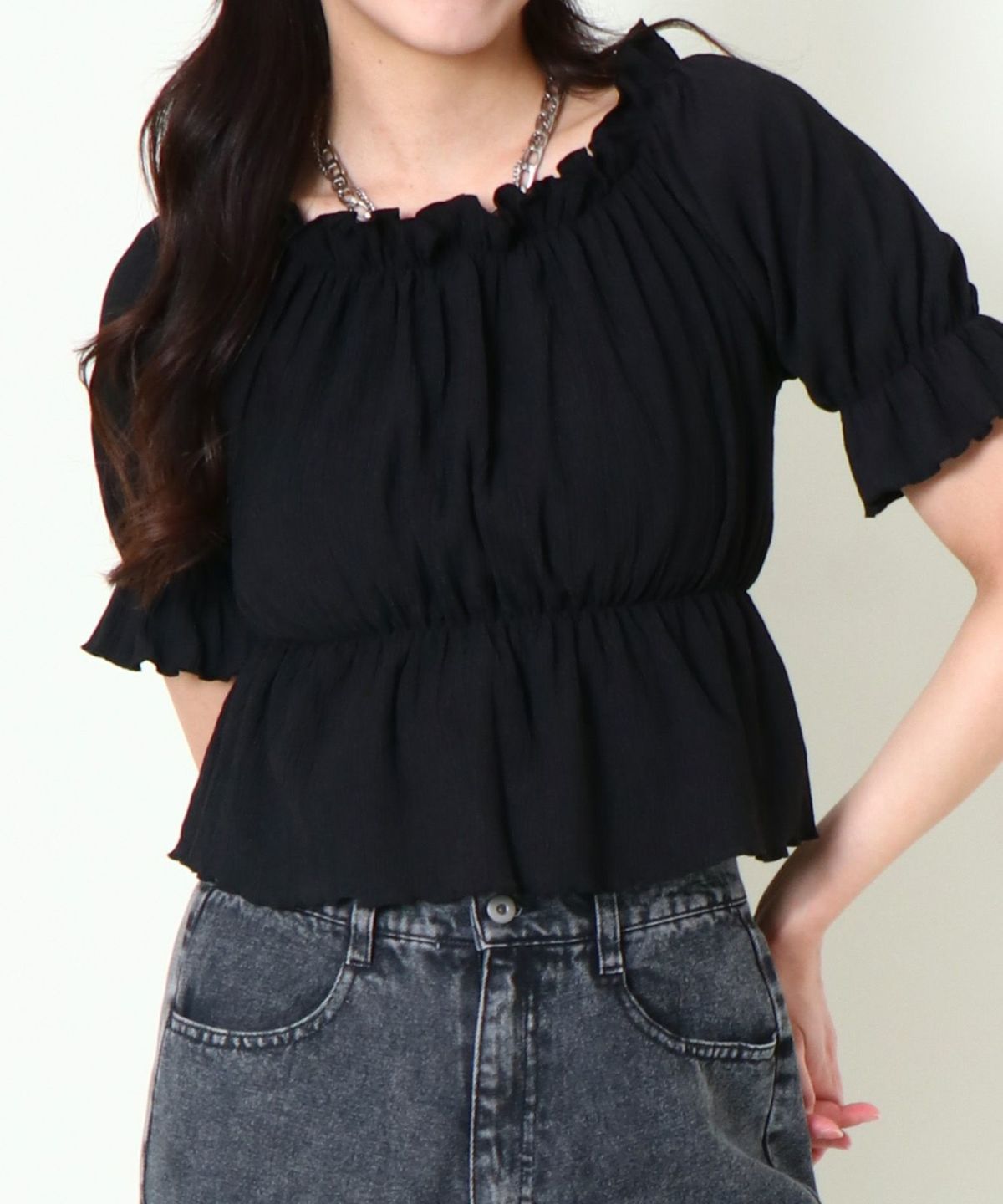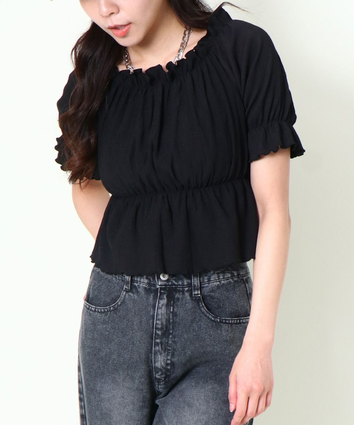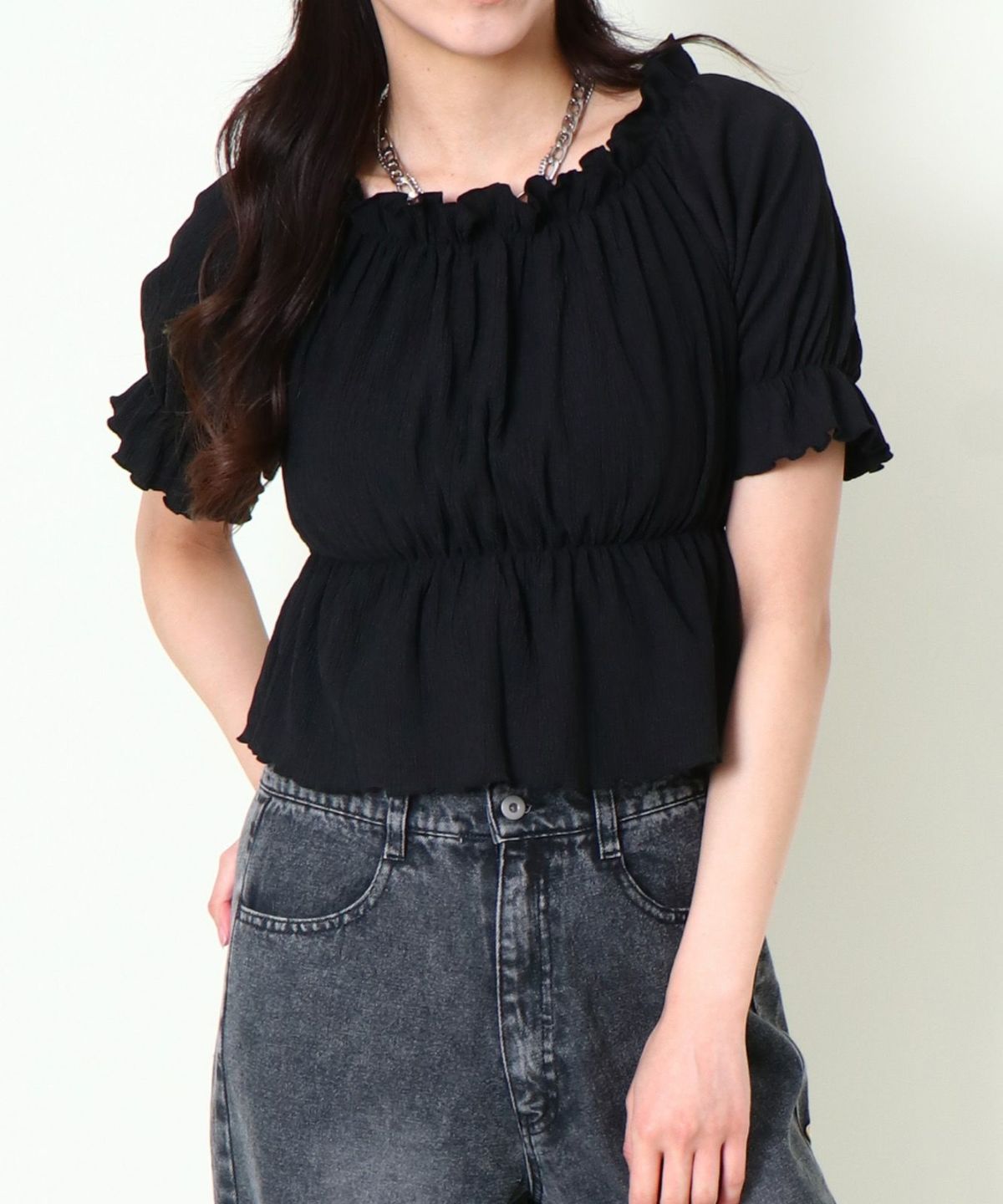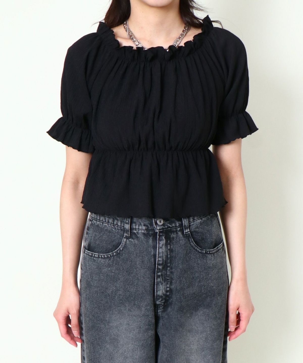 シャーリングオフショルトップス