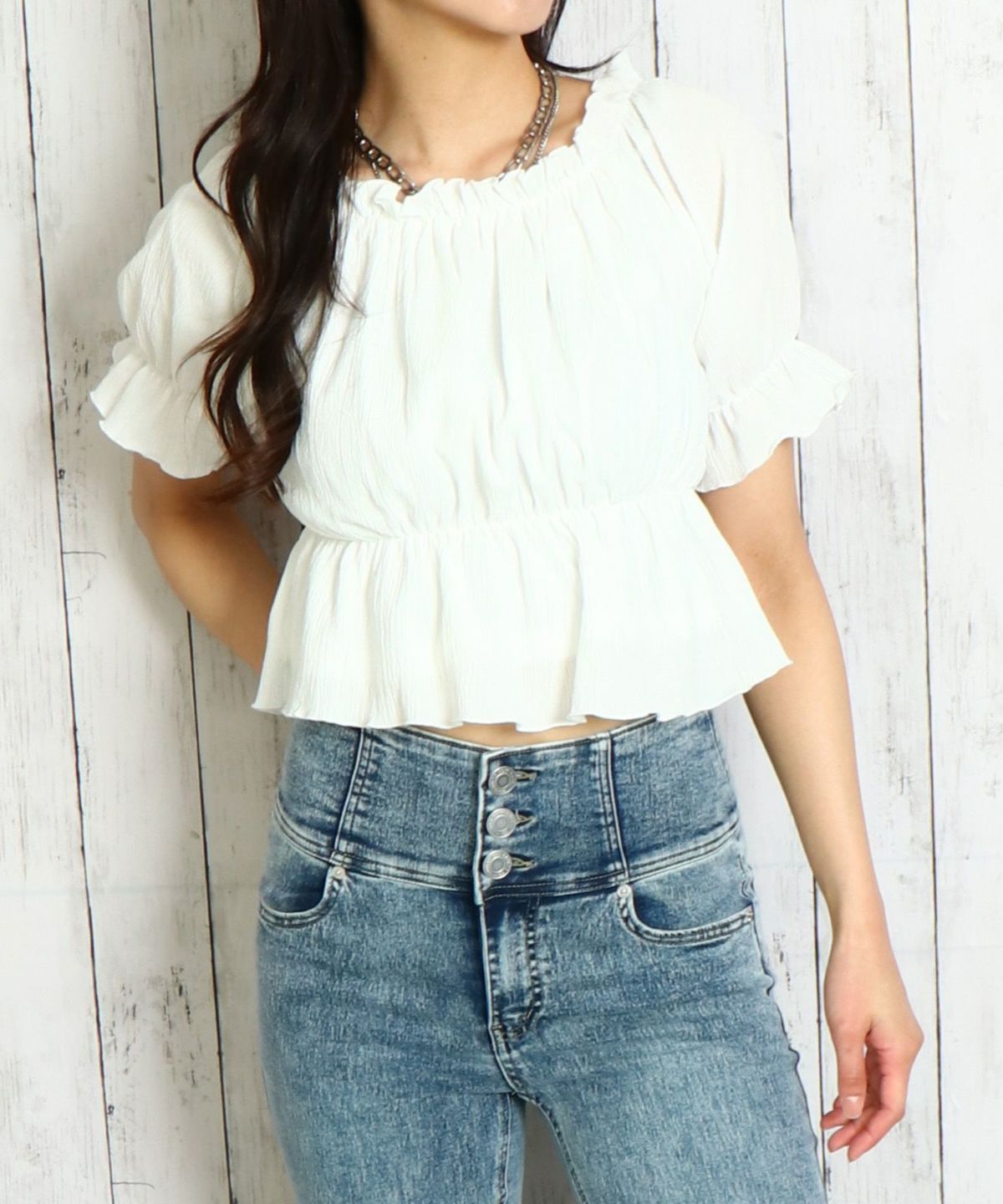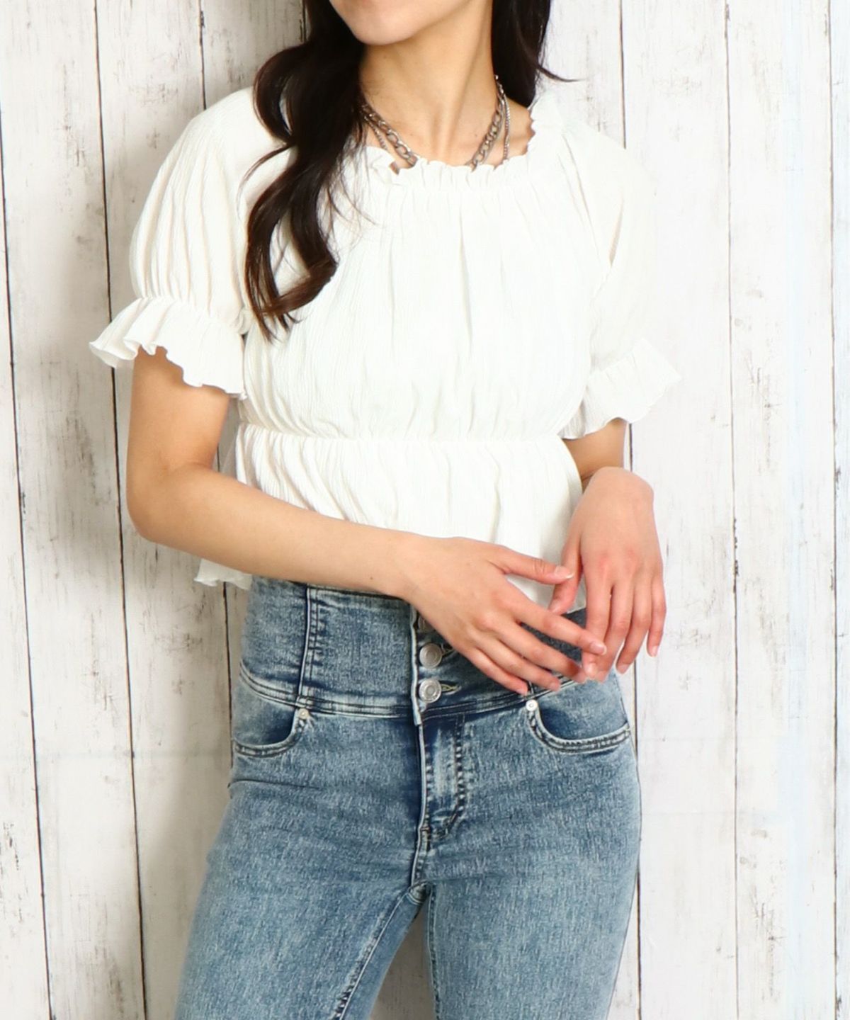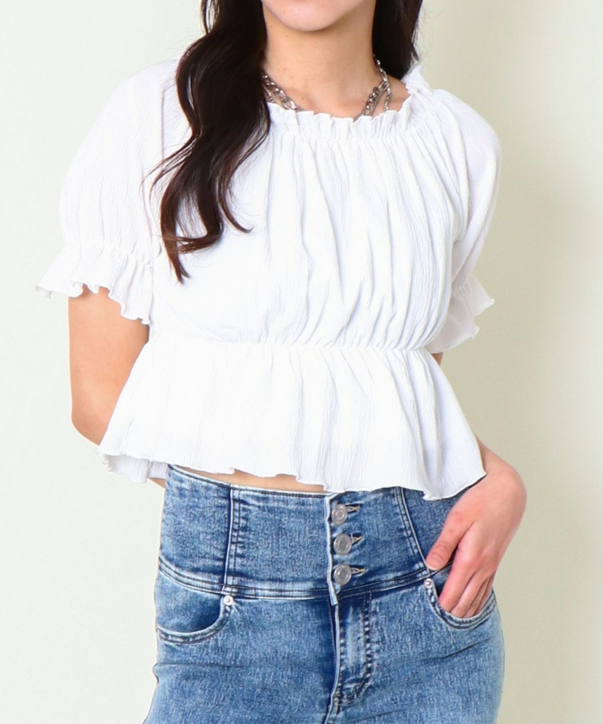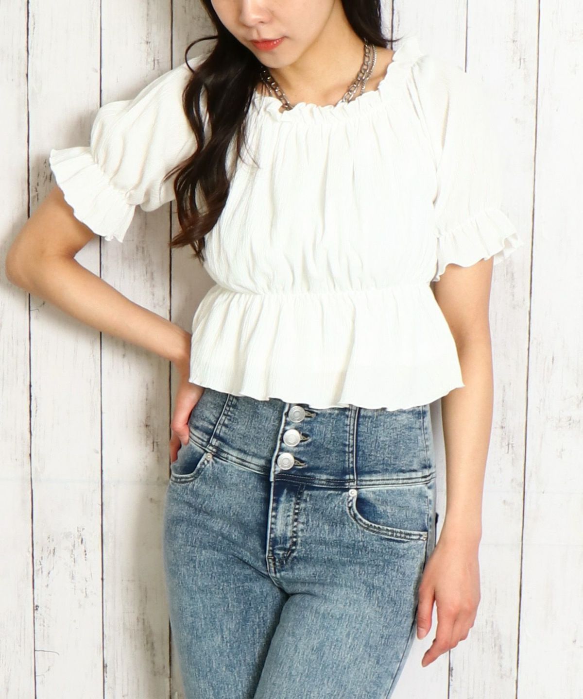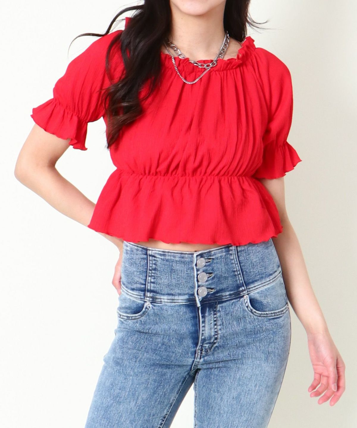 シャーリングオフショルトップス