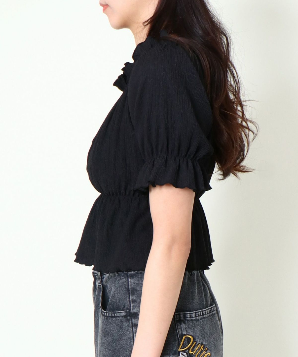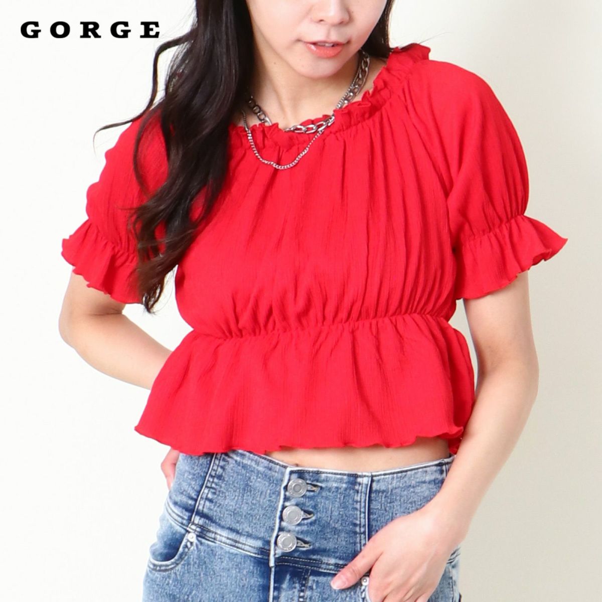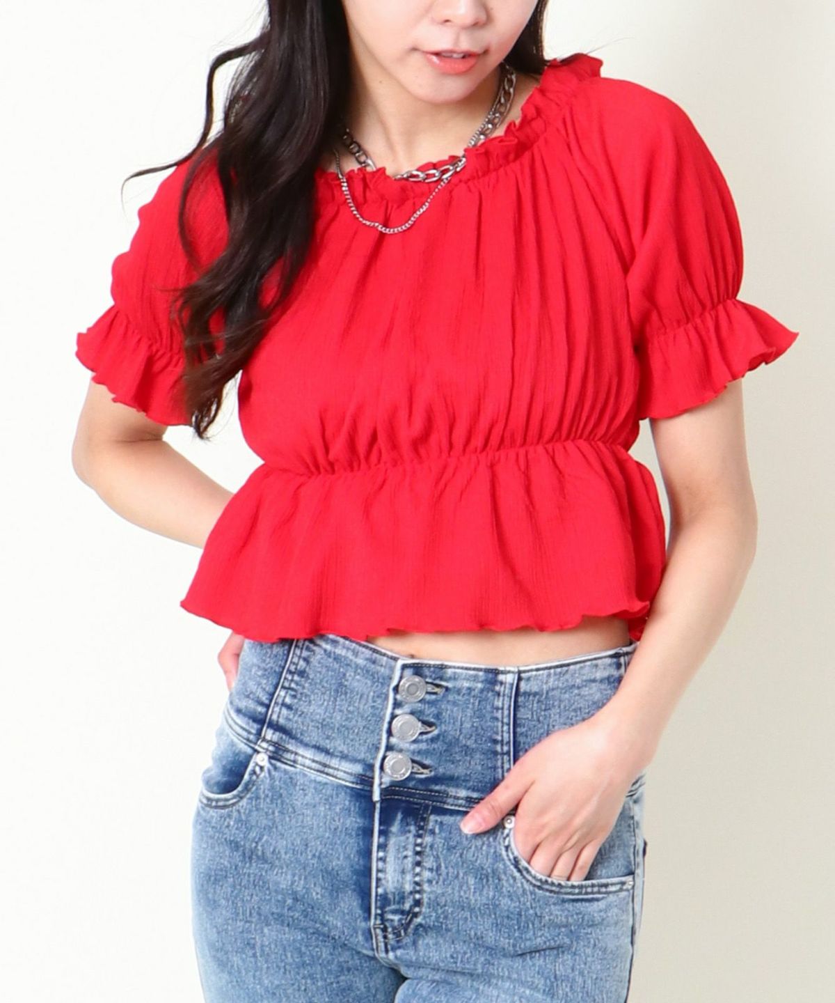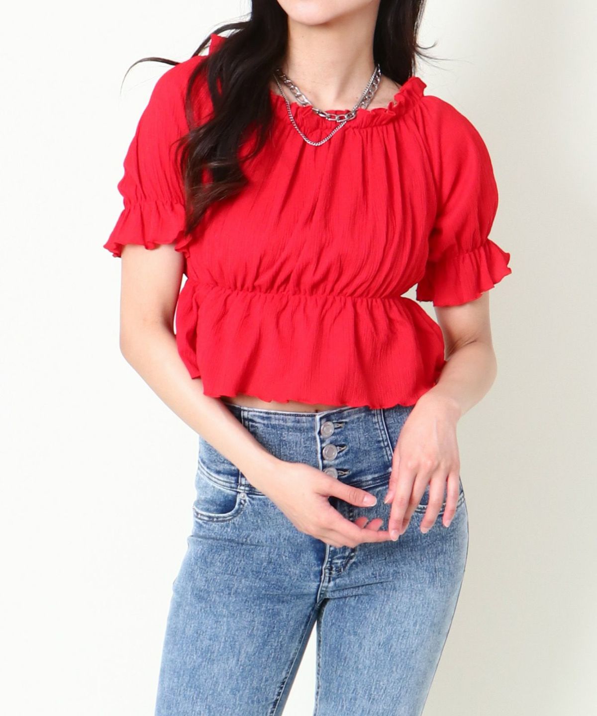シャーリングオフショルトップス