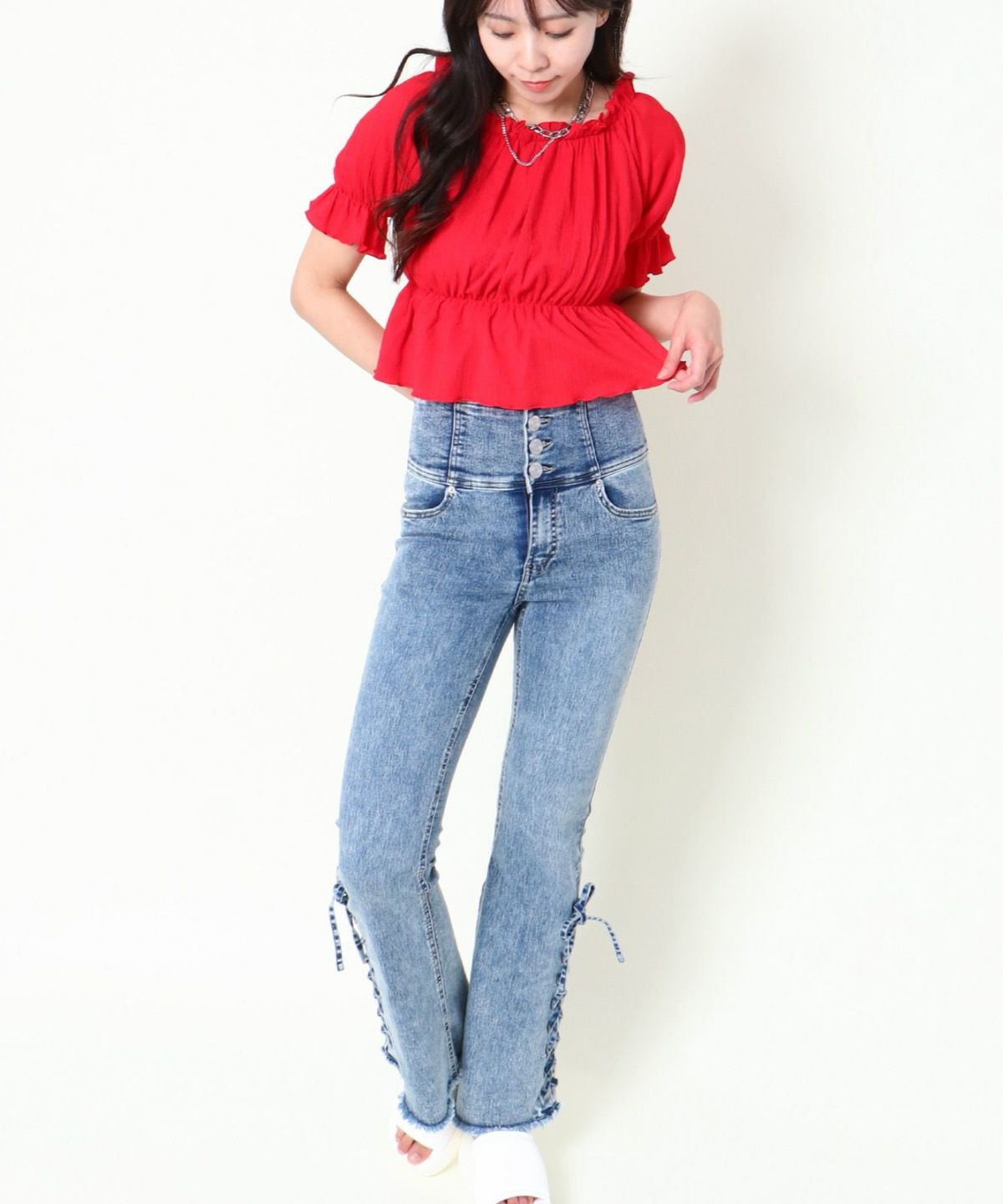 オフショル半袖トップス