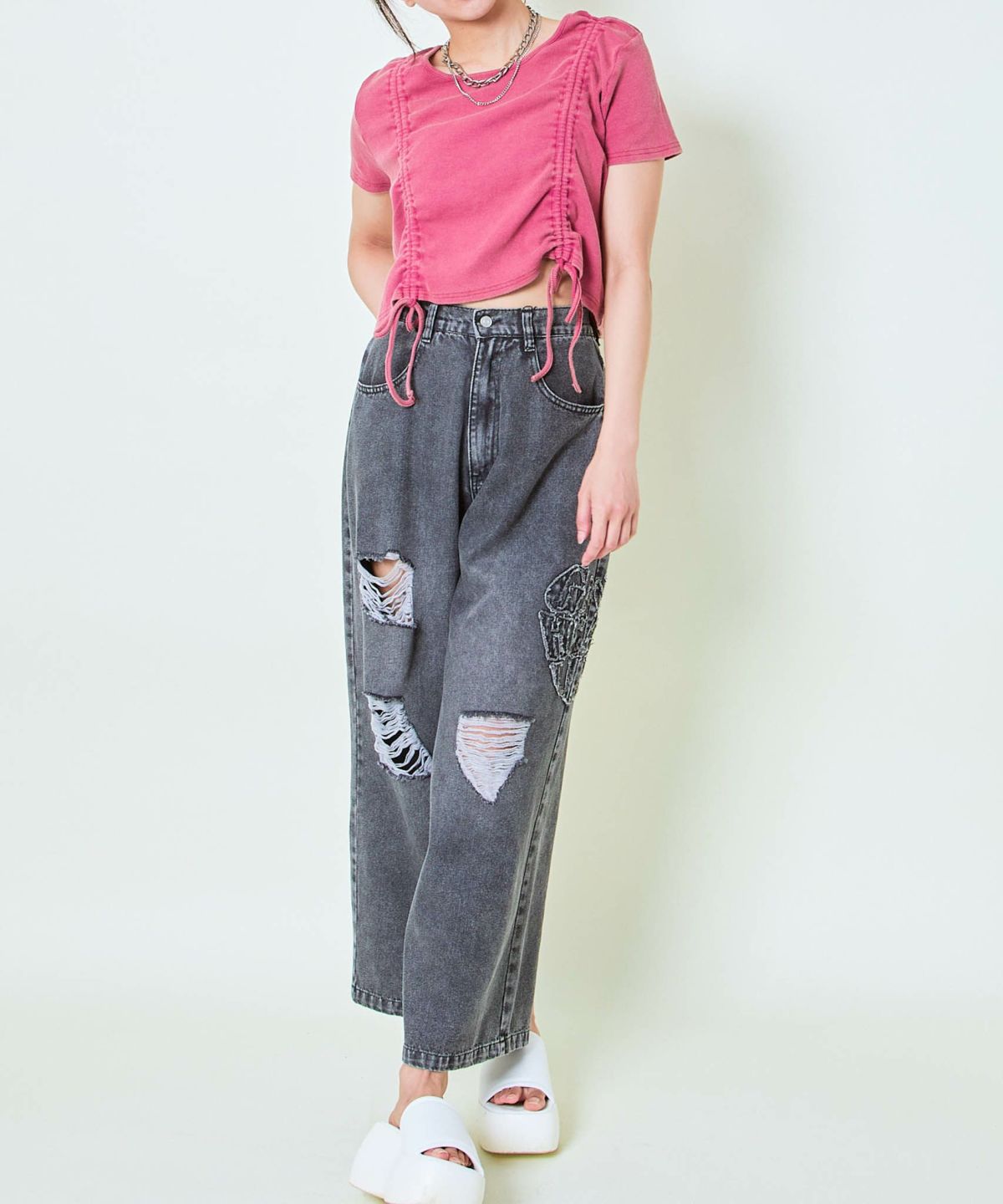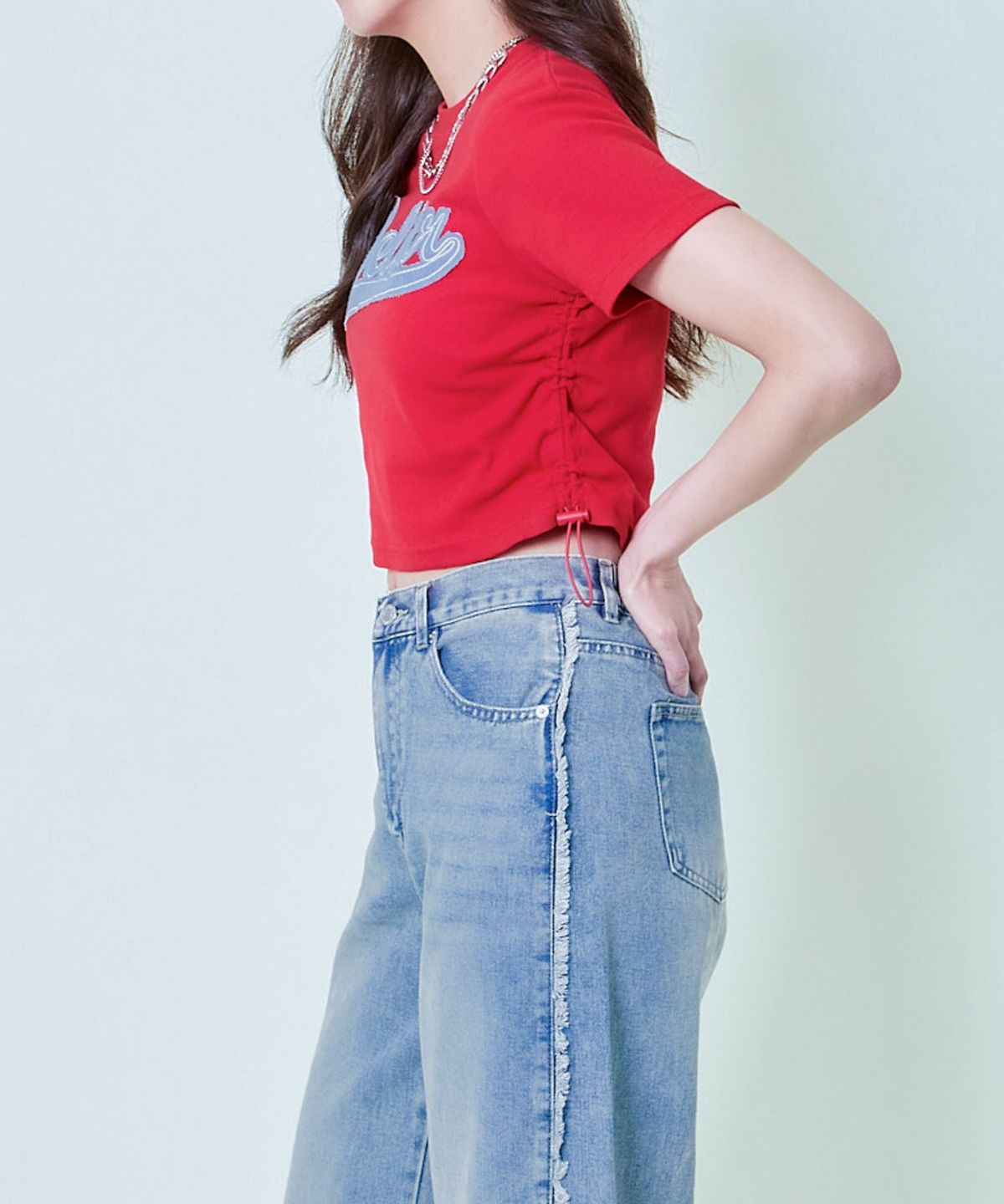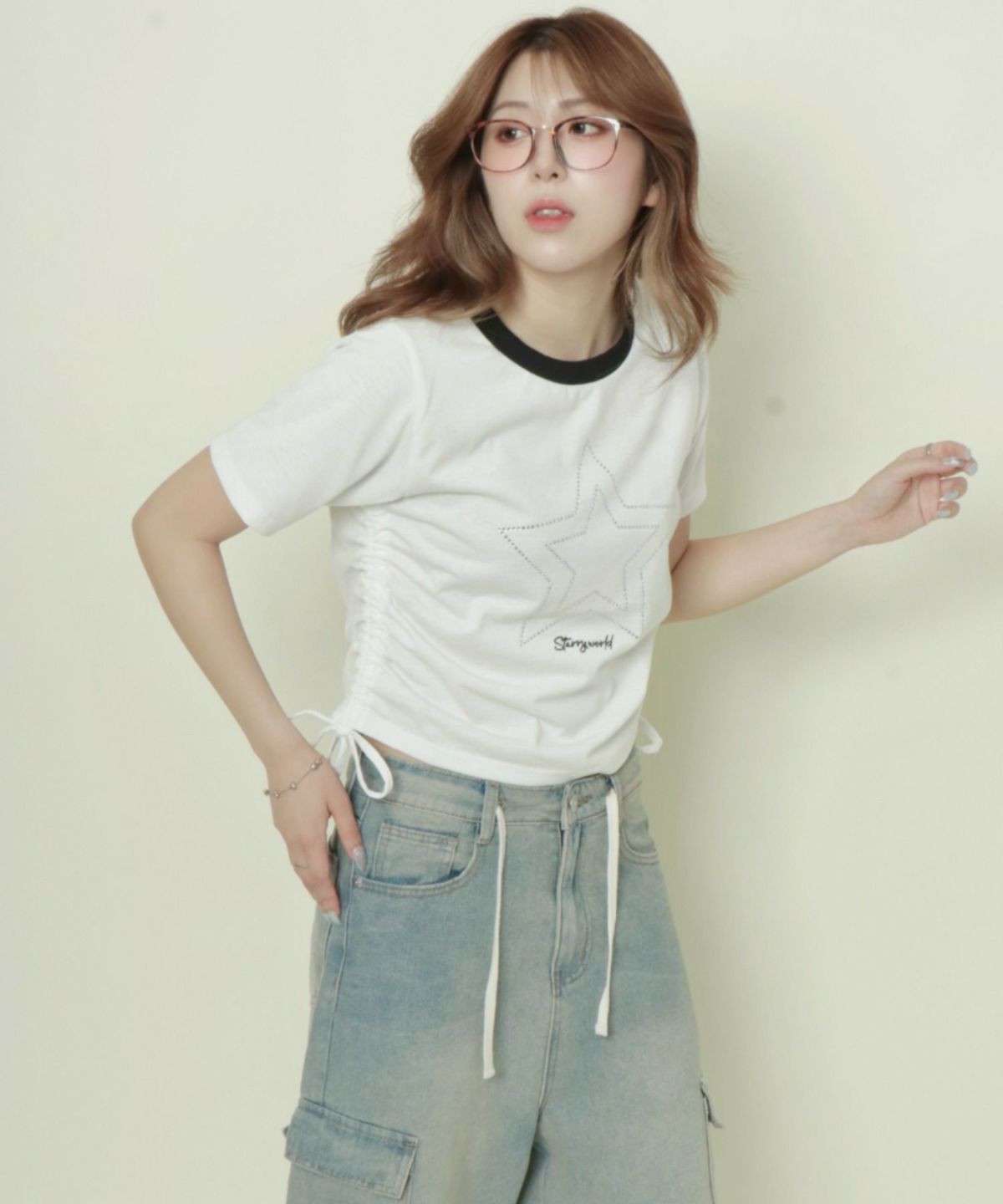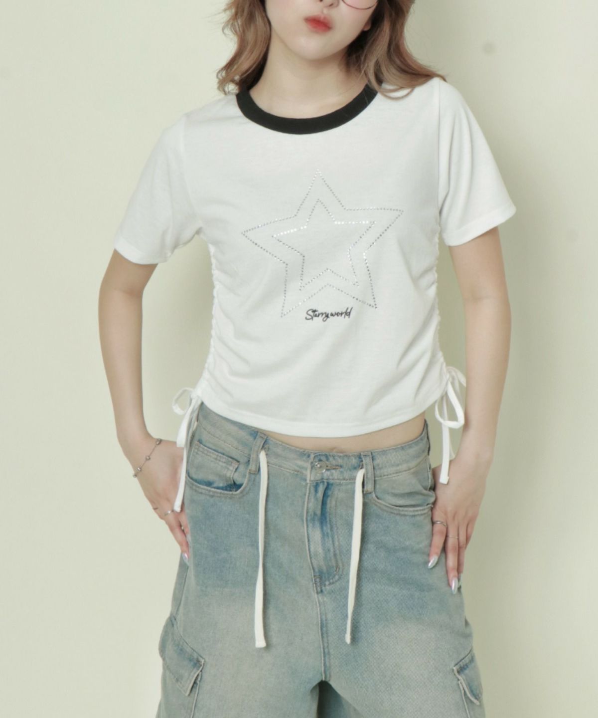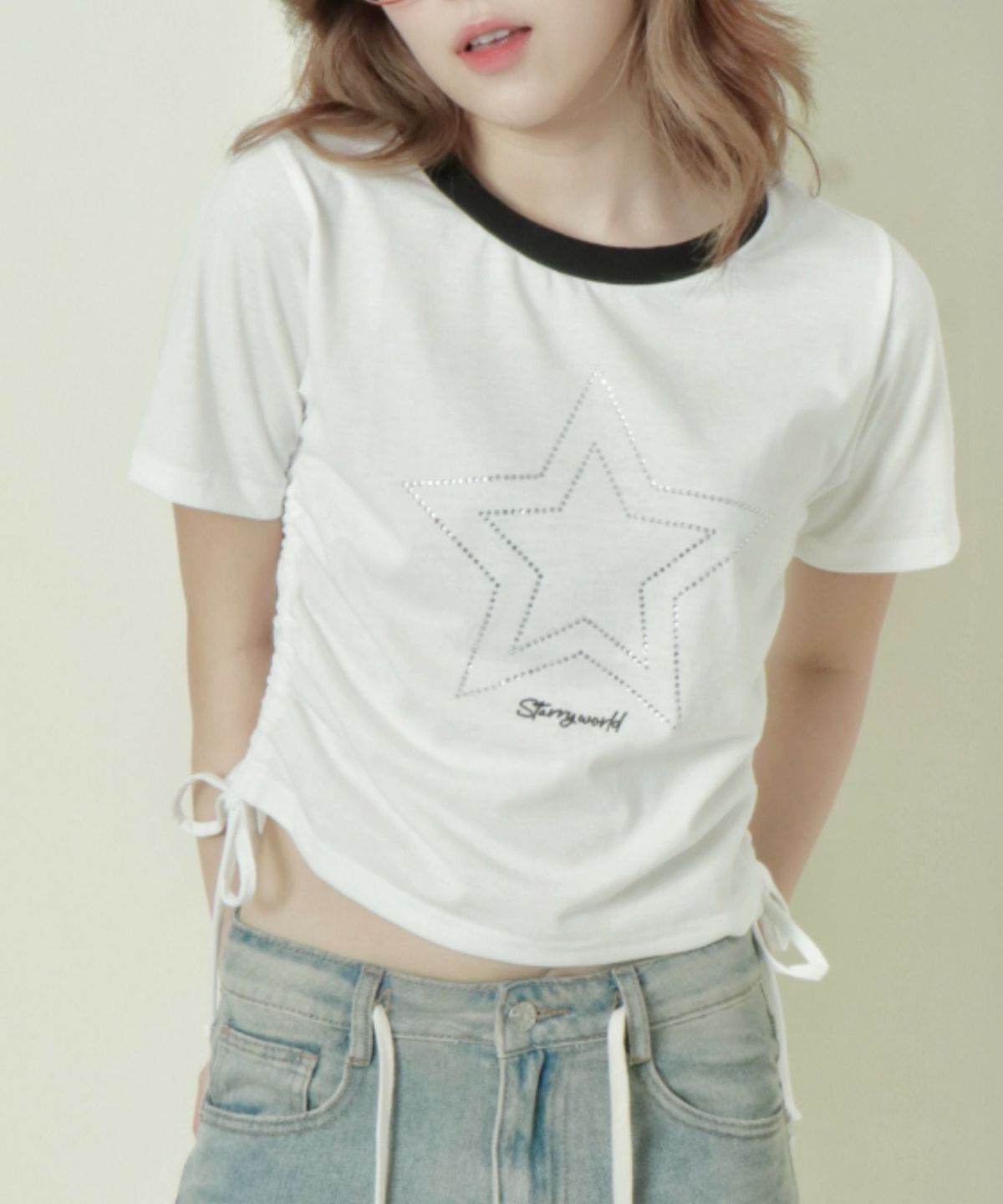 他の画像を見る 《キラッとドロスト》レディース 半袖Tシャツ サイドギャザー クロップド丈 春夏秋 2BUY10%OFF 定価 ¥ 4,389 のところ SALE価格 ¥ 1,427 税込 カートに入れる お気に入りに登録する