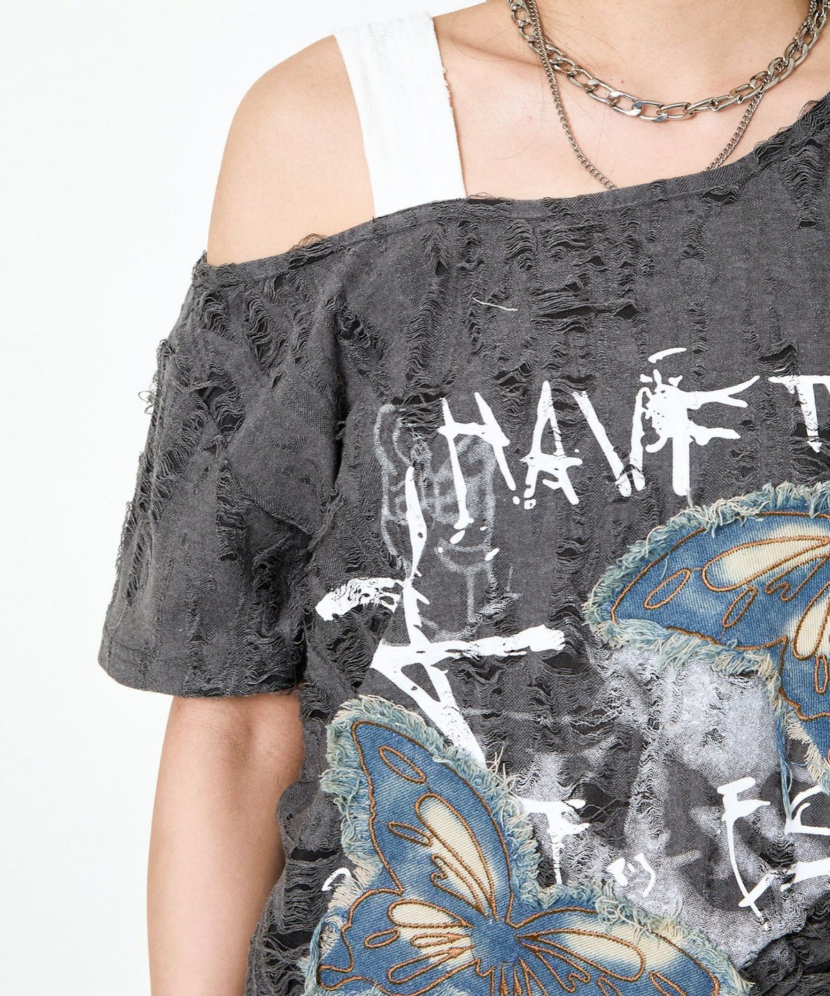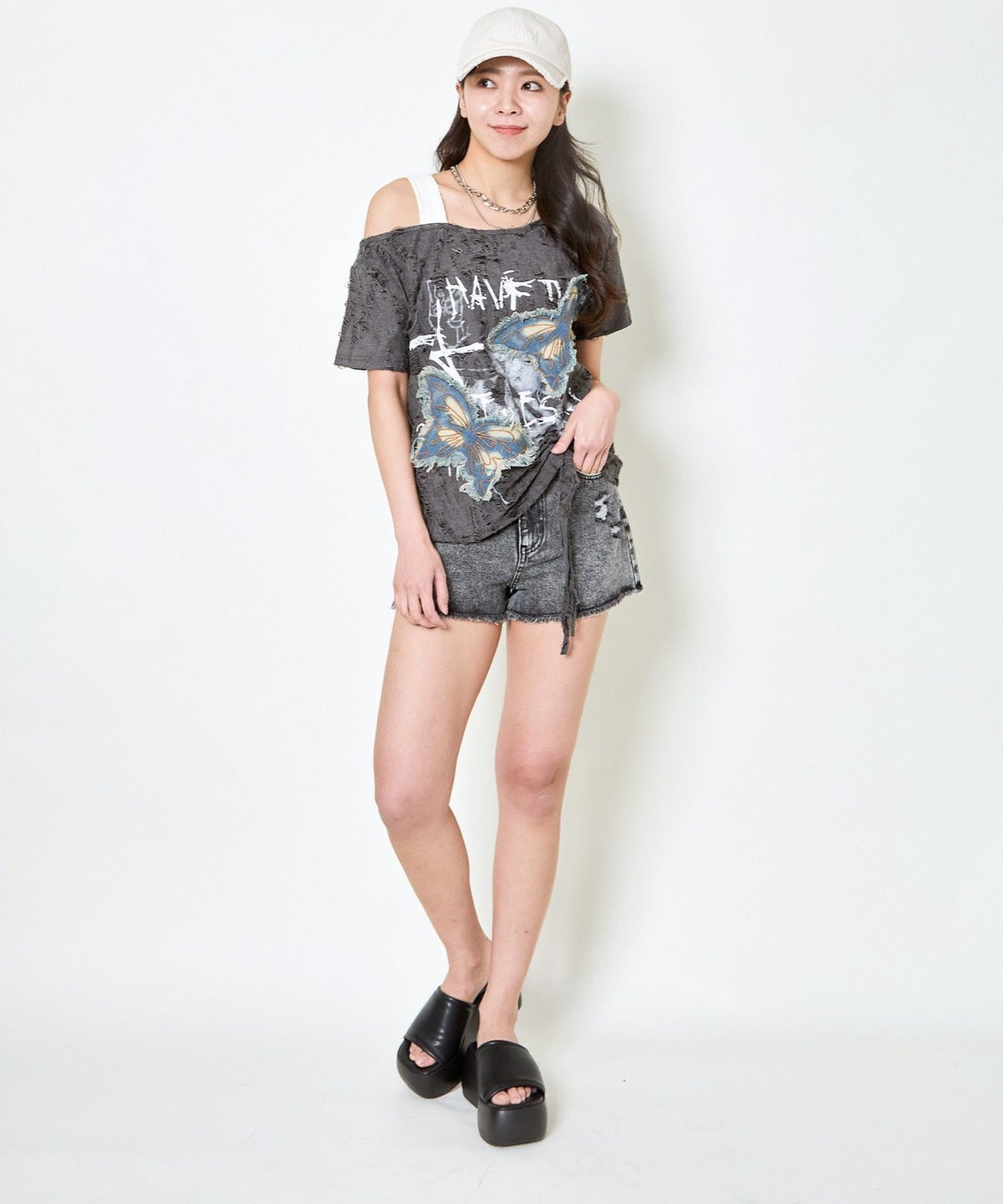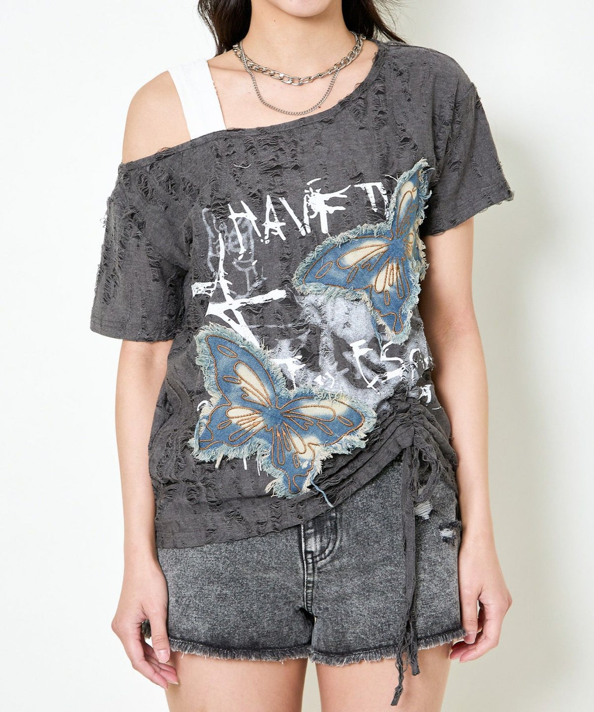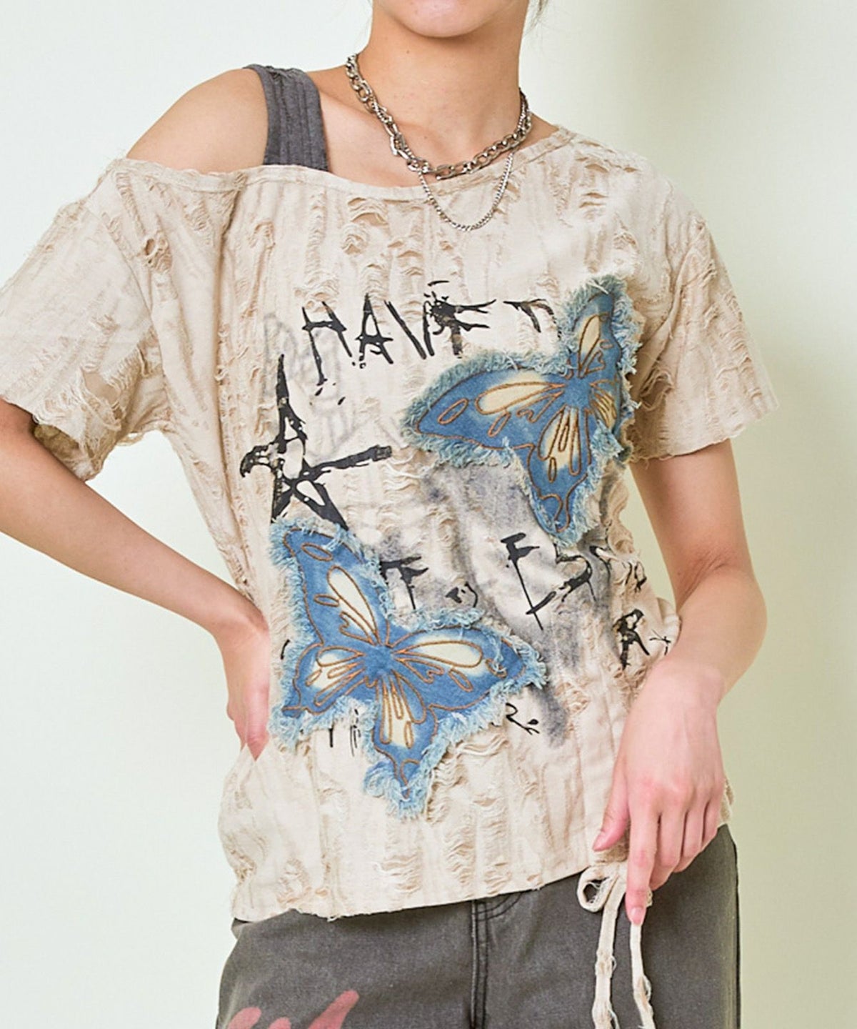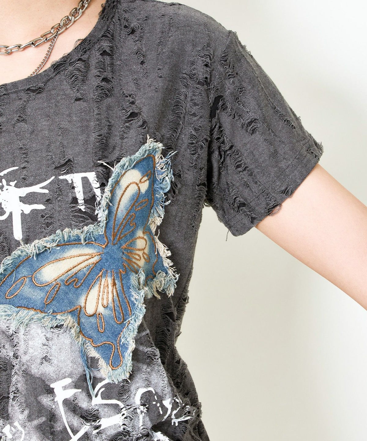 他の画像を見る 《デニム蝶×ワンショル風》クラッシュTシャツ/個性派エモ映え 2BUY10%OFF 通常価格 ¥ 4,389 のところ 販売価格 ¥ 2,194 税込 カートに入れる お気に入りに登録する