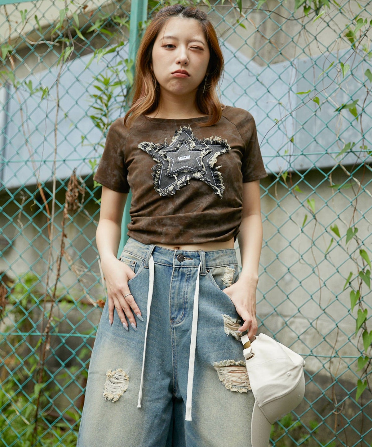 他の画像を見る 《デニム星ワッペン×ムラ染め》リメイク風Tシャツ/こなれストリート 2BUY10%OFF 通常価格 ¥ 4,389 のところ 販売価格 ¥ 2,194 税込 カートに入れる お気に入りに登録する