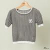 《配色ケーブル編み×ロゴ刺繍》レディース 半袖ニットプルオーバー 春夏秋