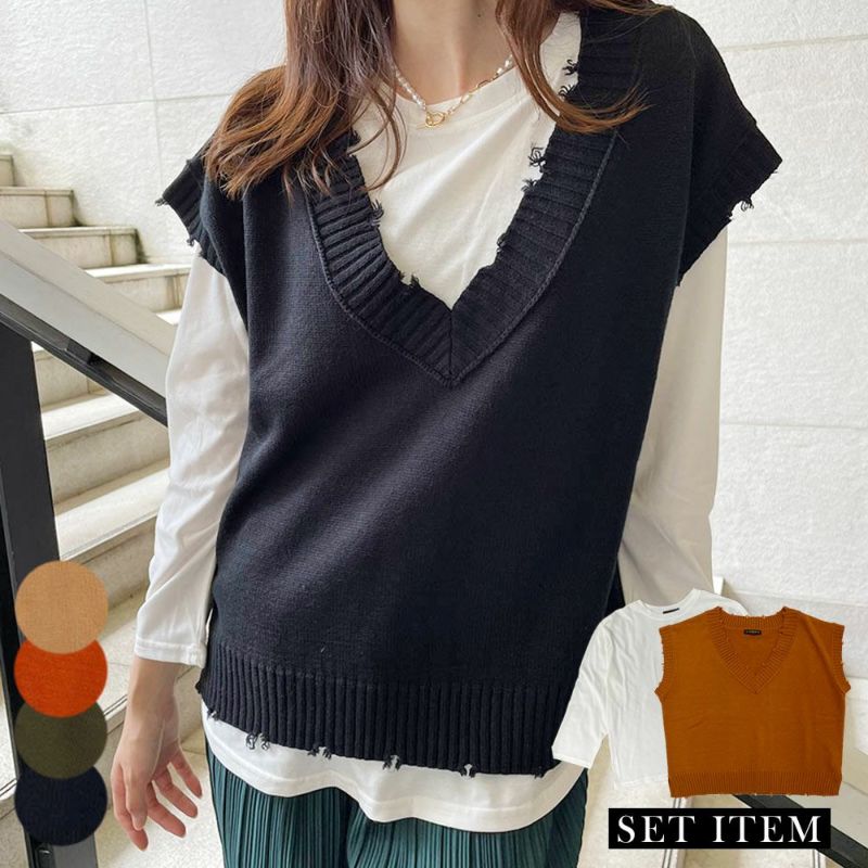 【SET ITEM】お得なロンT付きのニットベストセットが登場★