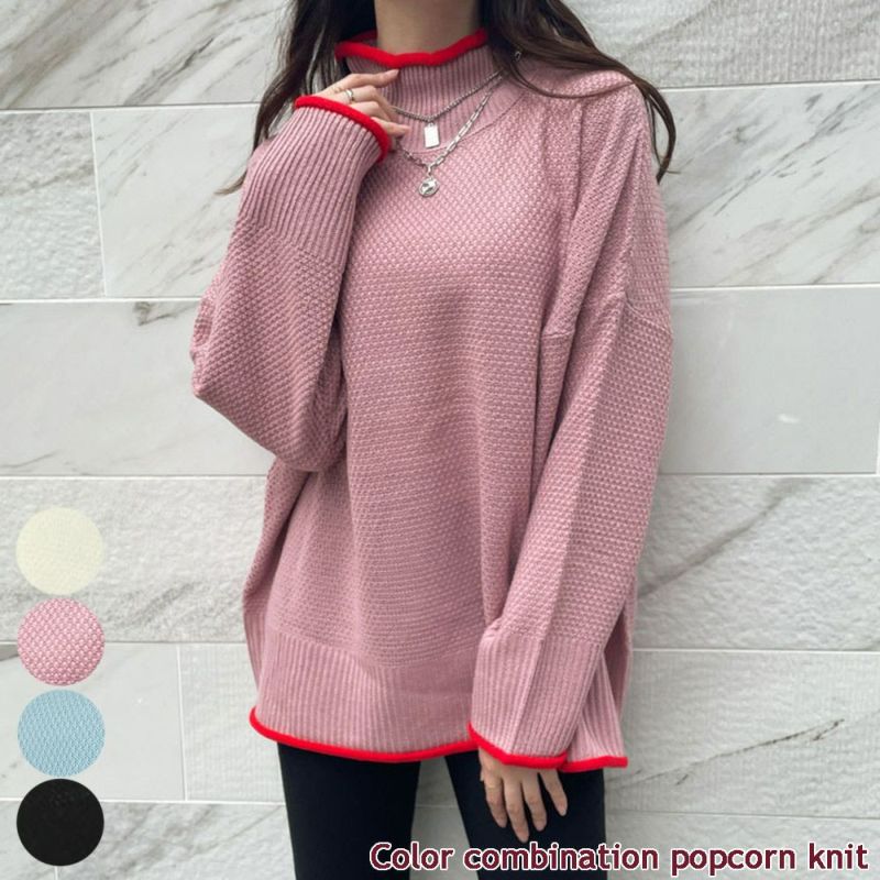 プルオーバー トップス 配色 ポップコーン ニット 秋 冬 2230004